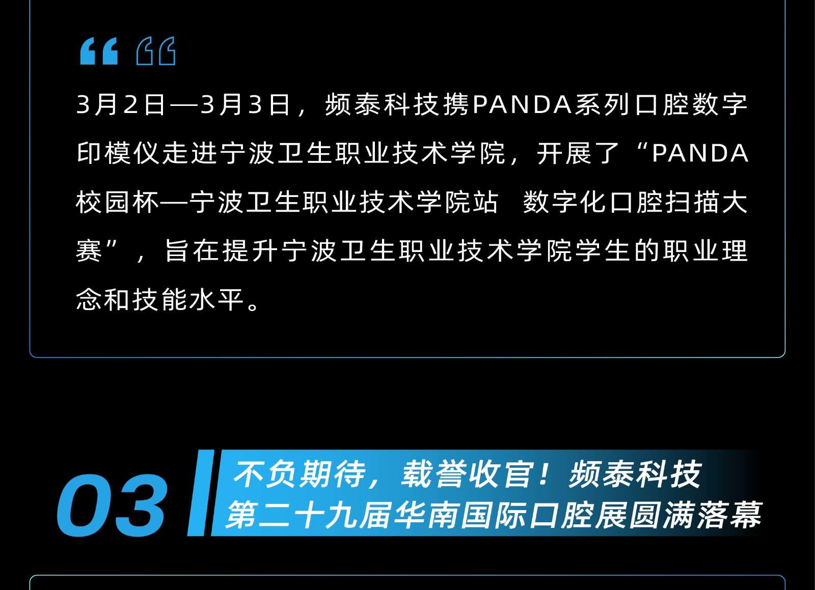 频泰科技公司成立于2015年,总部位于浙江宁波,研发和运营基地设在四川成都,制造基地设在“中国牙谷”四川资阳。频泰科技公司致力于三维成像技术研究与应用,致力于3D数字化口内扫描仪、牙模扫描仪、CAD/CAM口腔修复软件和齿科数控研磨铣削设备的研发和制造,研发的领域涵盖了光学、机械、电子、算法、软件、材料等六大学科领域,目前已经获得了40项以上国内外专利授权。公司核心成员来自中国科学院、电子科技大学、哈尔滨工业大学等国内知名研究院所和高校,以客户需求为中心,在行业内始终保持技术领先优势,推出的口腔数字印模仪获得了国内外广大客户的认可。本着“技术领先、服务一流”的理念,公司将深耕数字化口腔医疗设备领域,致力于为国内外口腔医院、诊所、技工所提供完整的口腔数字化解决方案。